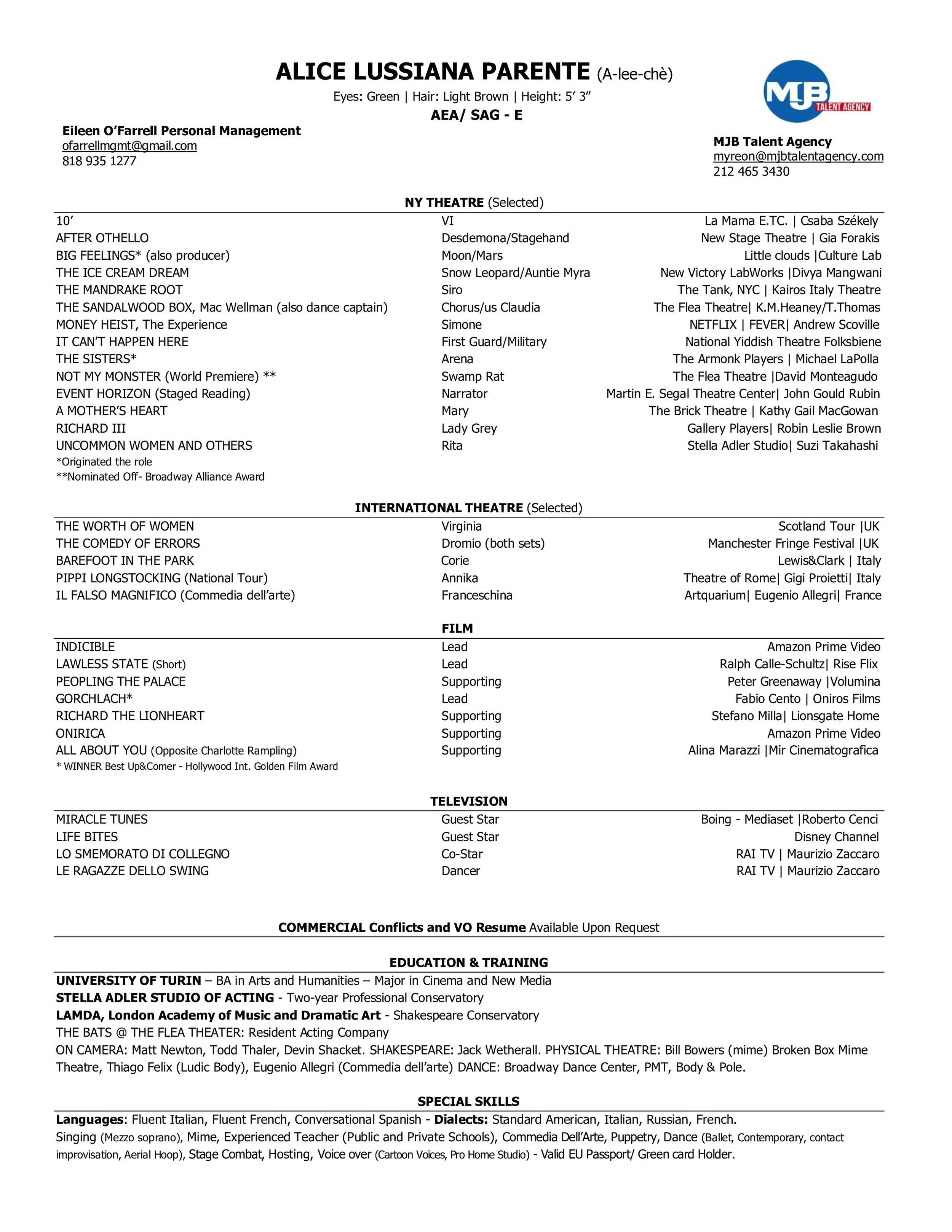 I was born and raised in Italy and I’m an award-winning actress and voice over talent, raised between the mountains of Piedmont and Turin. I grew up playing with my TEN nonni (ask me about that during auditions), climbing trees and watching my mom paint frescoes while I tried to “invent a new color”.